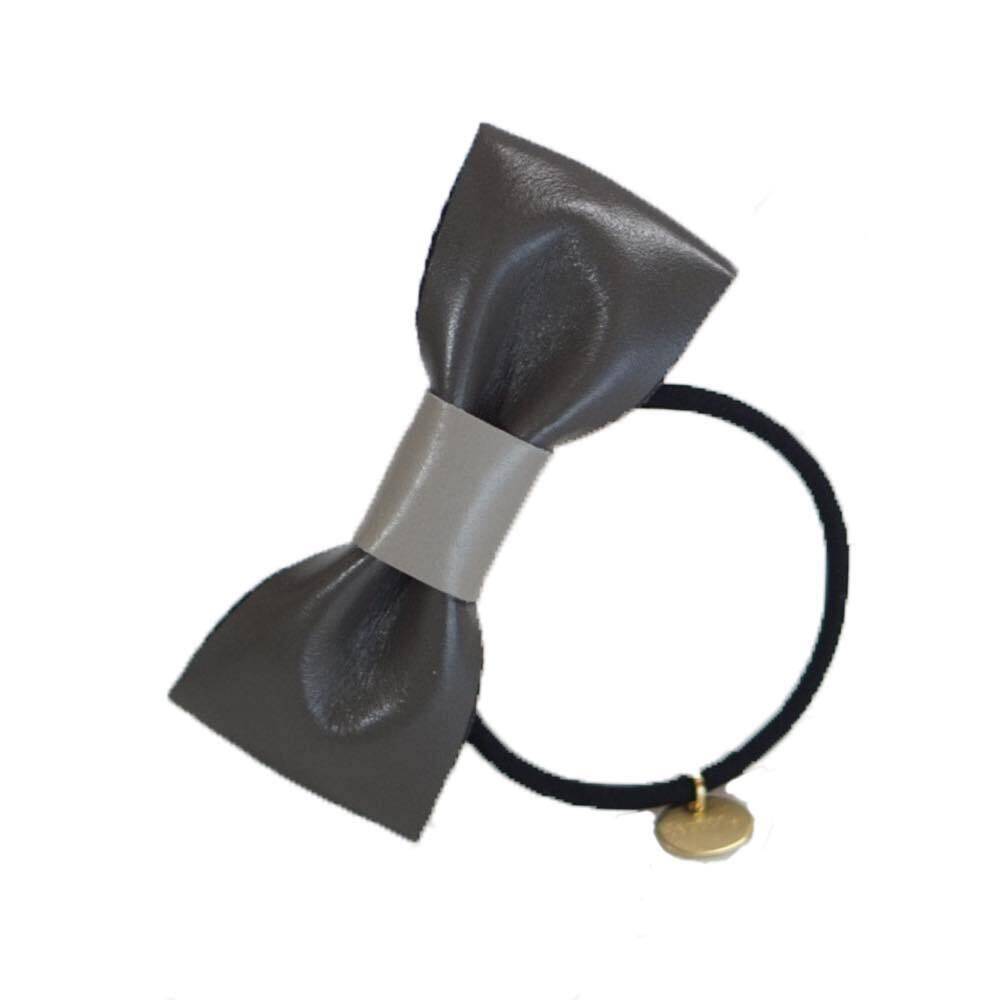 [グレー×ライトグレー] レザーリボン ヘアゴム