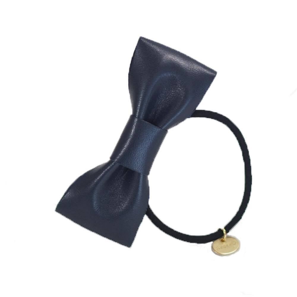 [ネイビー] レザーリボン ヘアゴム